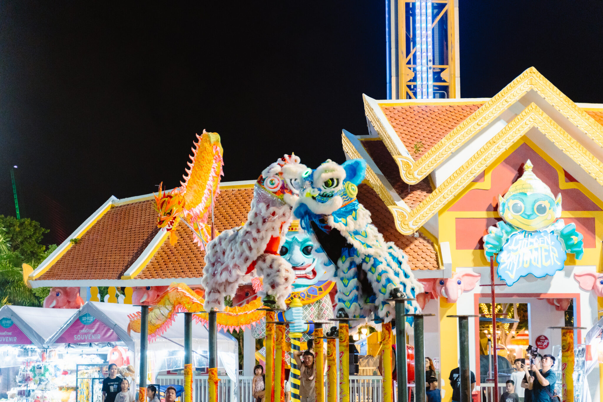 Không chỉ có lân sư rồng, không khí lễ hội tại quảng trường Sun Wheel còn được khuấy động với các tiết mục biểu diễn bartender, xiếc, ảo thuật, cùng nhiều hoạt động trải nghiệm hấp dẫn. Từ khu triển lãm về văn hóa lân sư rồng, đến khu trò chơi dân gian như nhảy lò cò, cờ tướng, O-X – tất cả tạo nên một không gian rộn ràng, gần gũi mà vẫn mang hơi thở hiện đại. Và dĩ nhiên, không thể thiếu hành trình food tour với hơn 50 gian hàng tại Chợ đêm Vui Phết, cùng menu BBQ thơm lừng tại nhà hàng Panda – nơi bạn vừa thưởng thức ẩm thực, vừa chiêm ngưỡng vẻ đẹp lung linh của sông Hàn về đêm.