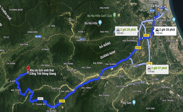 Đường đi từ Hội An hoặc Tam Kỳ: Từ đây, bạn có thể lái xe về hướng Đại Lộc, đến cầu Hà Nha và tiếp tục đi theo hướng dẫn tương tự như trên để đến Đông Giang và làng Văn hóa Cơ Tu.