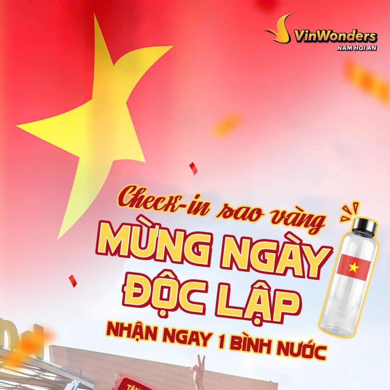 Từ ngày 01/09 đến hết ngày 02/09/2024, khi ghé thăm VinWonders Nam Hội An, bạn sẽ có cơ hội tham gia minigame với thể lệ vô cùng đơn giản nhưng lại mang đến những trải nghiệm tuyệt vời. Sự kiện lần này không chỉ là một hoạt động giải trí, mà còn là dịp để mỗi du khách thể hiện tình yêu quê hương, đất nước thông qua những bức ảnh check-in đầy ý nghĩa.