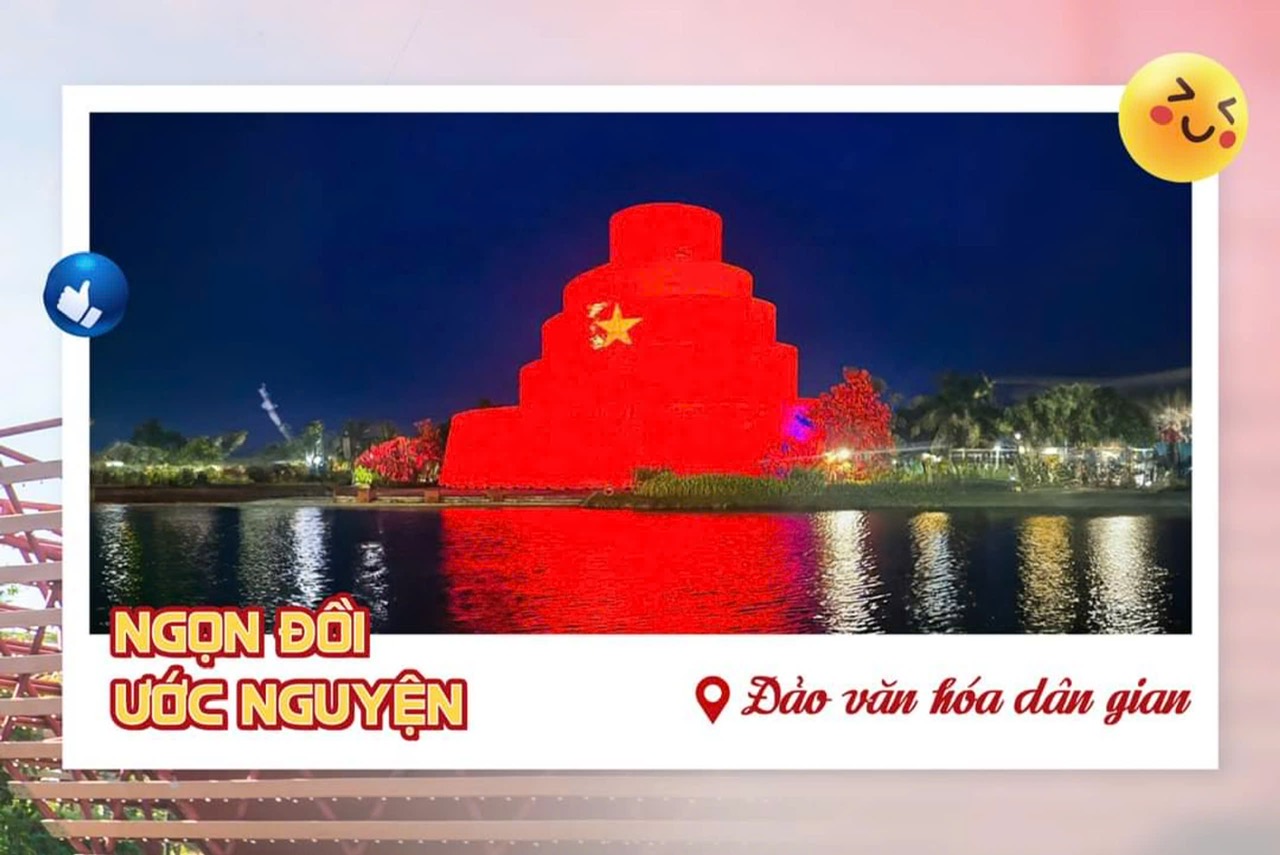 Chụp ảnh với lá cờ Việt Nam: Khi đến VinWonders Nam Hội An, bạn có thể dễ dàng bắt gặp hình ảnh lá cờ đỏ sao vàng quen thuộc ở nhiều địa điểm trong công viên. Đồi Ước Nguyện là một trong những nơi tuyệt đẹp để bạn thả mình vào không gian thiên nhiên và chụp cho mình những bức hình ấn tượng cùng lá cờ Tổ Quốc. Ngoài ra, bạn cũng có thể check-in với những sản phẩm mang hình ảnh lá cờ Việt Nam được trưng bày tại đây.