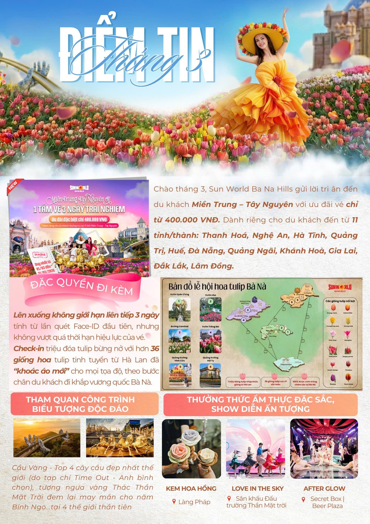 Chương trình ưu đãi tháng 3 không chỉ đơn thuần là một chính sách giảm giá vé tham quan mà còn là lời tri ân từ Sun Group dành cho người dân khu vực miền Trung – Tây Nguyên, nơi đã gắn bó mật thiết với sự phát triển của khu du lịch trong suốt gần hai thập kỷ qua. Với mức giá ưu đãi cùng hàng loạt trải nghiệm hấp dẫn đang chờ đón, đây được xem là thời điểm lý tưởng để các gia đình, nhóm bạn trẻ và du khách địa phương lên kế hoạch du xuân, nghỉ dưỡng hoặc khám phá Bà Nà Hills trong mùa lễ hội sôi động nhất trong năm.