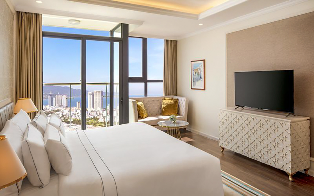 Hệ thống phòng nghỉ tại đây được thiết kế hiện đại, sang trọng với nhiều lựa chọn khác nhau. Phòng căn hộ hạng Studio có diện tích từ 41 đến 43 m2, được trang bị một giường đôi hoặc hai giường đơn, tạo sự linh hoạt cho du khách. Đối với những ai muốn không gian rộng rãi hơn, phòng căn hộ hạng Executive Suite với diện tích từ 42 đến 60 m2, gồm một giường đôi, là sự lựa chọn hoàn hảo. Nếu bạn muốn tận hưởng tầm nhìn đẹp nhất ra sông Hàn, cầu Rồng, phòng căn hộ hạng Executive Suite River với diện tích 53 m2 sẽ mang đến cho bạn trải nghiệm tuyệt vời nhất.