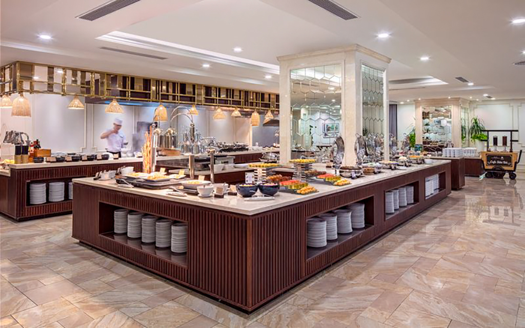 Khách hàng có thể bắt đầu ngày mới với bữa sáng buffet tự chọn tại hai nhà hàng River 1 và River 2 nằm ở tầng 3. Với thực đơn phong phú gồm các món ăn Á - Âu, hai nhà hàng này chắc chắn sẽ làm hài lòng những thực khách khó tính nhất. Giá vé buffet sáng dao động khoảng 350.000 VND/người lớn và 200.000 VND/trẻ em từ 4 đến 12 tuổi, trong khi trẻ em dưới 4 tuổi được miễn phí. Giờ phục vụ bữa sáng từ 06:00 đến 10:30, mang đến sự thuận tiện tối đa cho du khách.