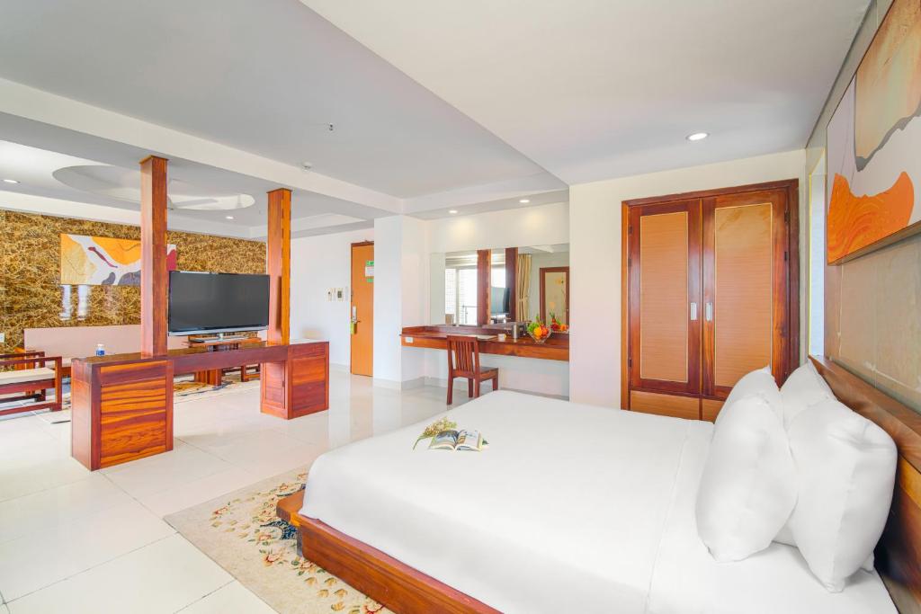 Khách Sạn Sông Công Đà Nẵng cung cấp nhiều loại phòng đa dạng, từ Deluxe Double rộng 28 mét vuông với giường đôi, đến Deluxe Sea View Suite sang trọng rộng 60 mét vuông với tầm nhìn hướng biển. Du khách cũng có thể lựa chọn phòng Executive Suite với ban công riêng, hay Family Suite phù hợp cho các gia đình với không gian rộng rãi và tiện nghi.