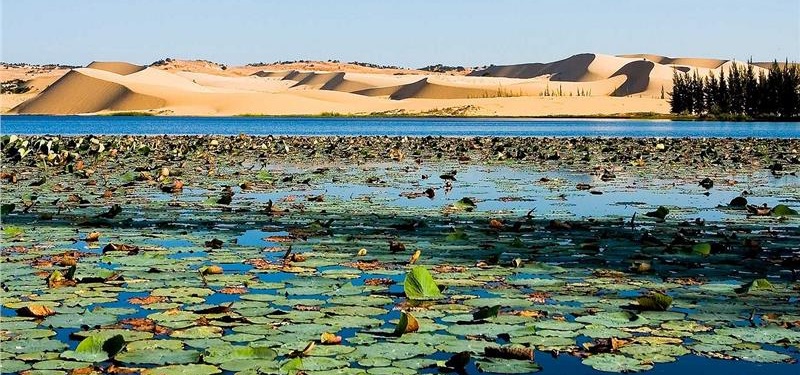 Điểm nhấn nổi bật trong chuyến đi chính là Bàu Trắng – Đồi Cát Trắng và Hồ Sen. Được ví như một trong những kiệt tác thiên nhiên của Bình Thuận, nơi đây nổi bật với những đồi cát trắng mịn trải dài vô tận, tạo nên một cảnh sắc vừa hùng vĩ vừa lãng mạn. Không chỉ có những đồi cát đẹp đến nao lòng, Hồ Sen nằm ngay giữa vùng cát mênh mông còn mang lại một cảm giác thanh bình với sắc xanh của những đóa sen rực rỡ, tô điểm cho khung cảnh thêm phần thơ mộng.