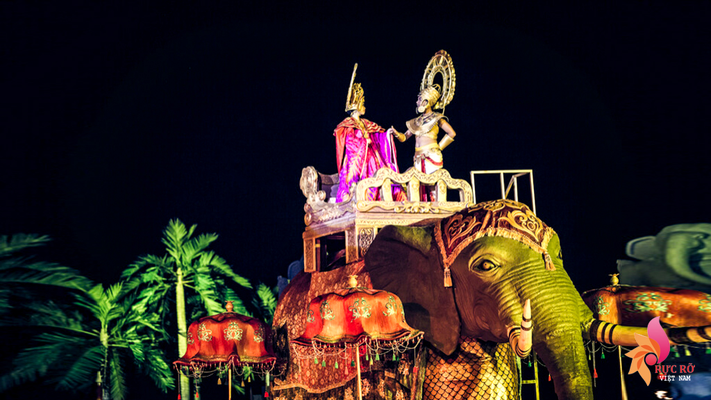 Cảnh trí được dàn dựng công phu, tái hiện vương quốc Champa huy hoàng với kiến trúc độc đáo, trang phục hoàng gia lộng lẫy và nghi thức cưới hỏi truyền thống. Mọi chi tiết đều được chăm chút tỉ mỉ, mang lại cảm giác chân thực như thể khán giả đang trực tiếp chứng kiến và tham gia vào lễ cưới trọng đại này.