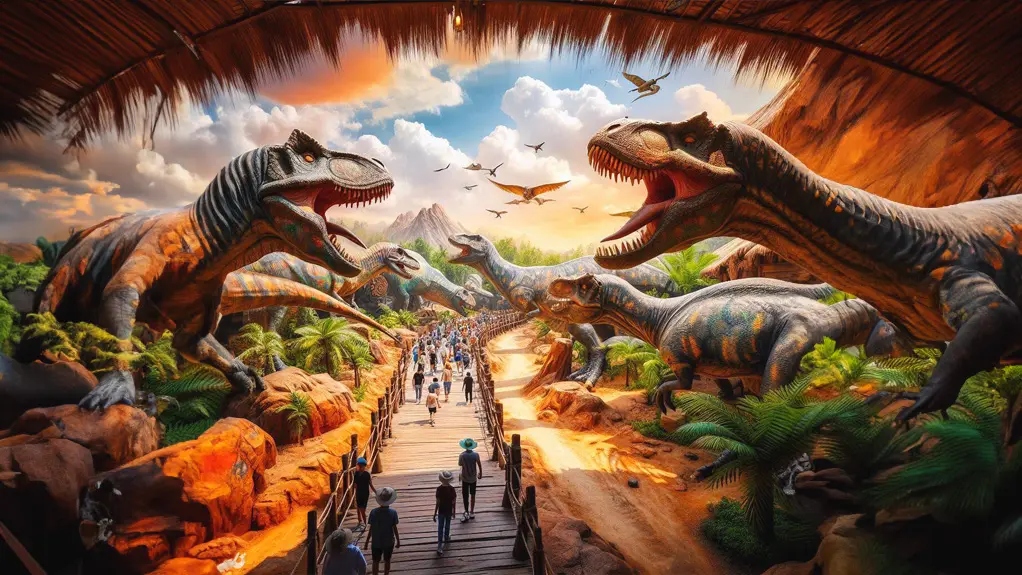 Hóa thân thành nhà thám hiểm dũng cảm, bạn sẽ được khám phá những chuyến phiêu lưu đầy thách thức tại vùng đất bí ẩn, nơi loài khủng long thống trị. Bên cạnh đó, du khách sẽ bị cuốn hút bởi những màn trình diễn khủng long ấn tượng, từ các cuộc diễu hành hoành tráng cho đến những trận chiến sinh tồn đầy kịch tính giữa các loài khủng long.