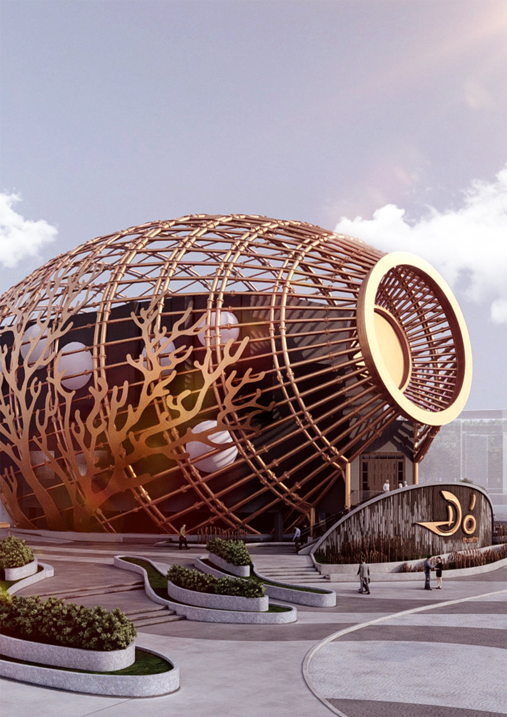 Lấy cảm hứng từ chiếc Đó, một nông cụ dân gian của người Việt dùng để đánh bắt cá, Nhà hát Đó – Đó Theatre được thiết kế như một chiếc đó khổng lồ nằm trên bờ biển Bãi Tiên. Với sự kết hợp hài hòa giữa kiến trúc truyền thống và hiện đại, Nhà hát Đó không chỉ là điểm đến của nghệ thuật dân gian mà còn là nơi hội tụ tinh hoa nghệ thuật thế giới, hứa hẹn trở thành điểm đến “phải ghé thăm” cho du khách trong và ngoài nước.