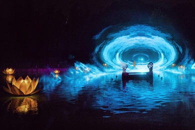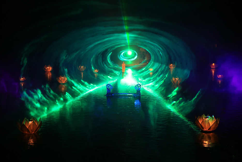 Xuất hiện giữa vườn sen huyền ảo, thiền sư Từ Đạo Hạnh – người sáng lập chùa Thầy, là tâm điểm của phần này. Câu chuyện về thiền sư không chỉ khơi gợi lòng từ bi và tinh thần giúp đời mà còn tôn vinh sự sáng tạo của ông trong nghệ thuật múa rối nước. Hiệu ứng đèn LED và laser tạo nên hình ảnh đàn chuồn chuồn lượn bay, hòa cùng những giai điệu dân ca quan họ "Se chỉ luồn kim", mang lại trải nghiệm thị giác độc đáo.